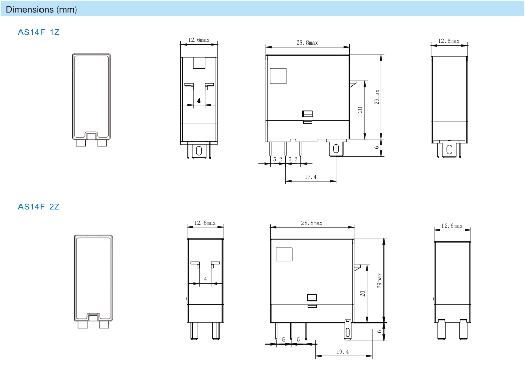 | Rated Load | 12A 250VAC/30VDC | 8A 250VAC/30VDC | |